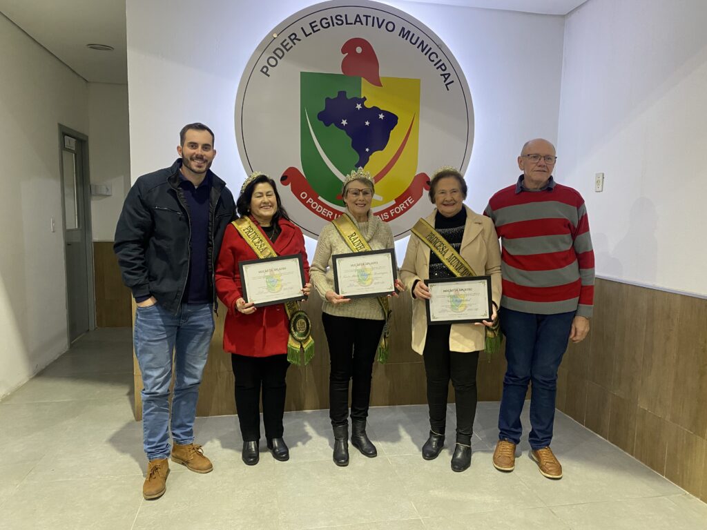 Duas moções foram aprovadas na sessão desta segunda-feira, 28. A primeira, de autoria do vereador Alberto Sausen (Podemos), presta homenagem pela conquista do título de Rainha e Princesas da nova corte da Terceira Idade de Venâncio Aires à Tânia Maria Schneider Domingues e suas Princesas, Noemia Kapp e Noeli Ruppenthal.