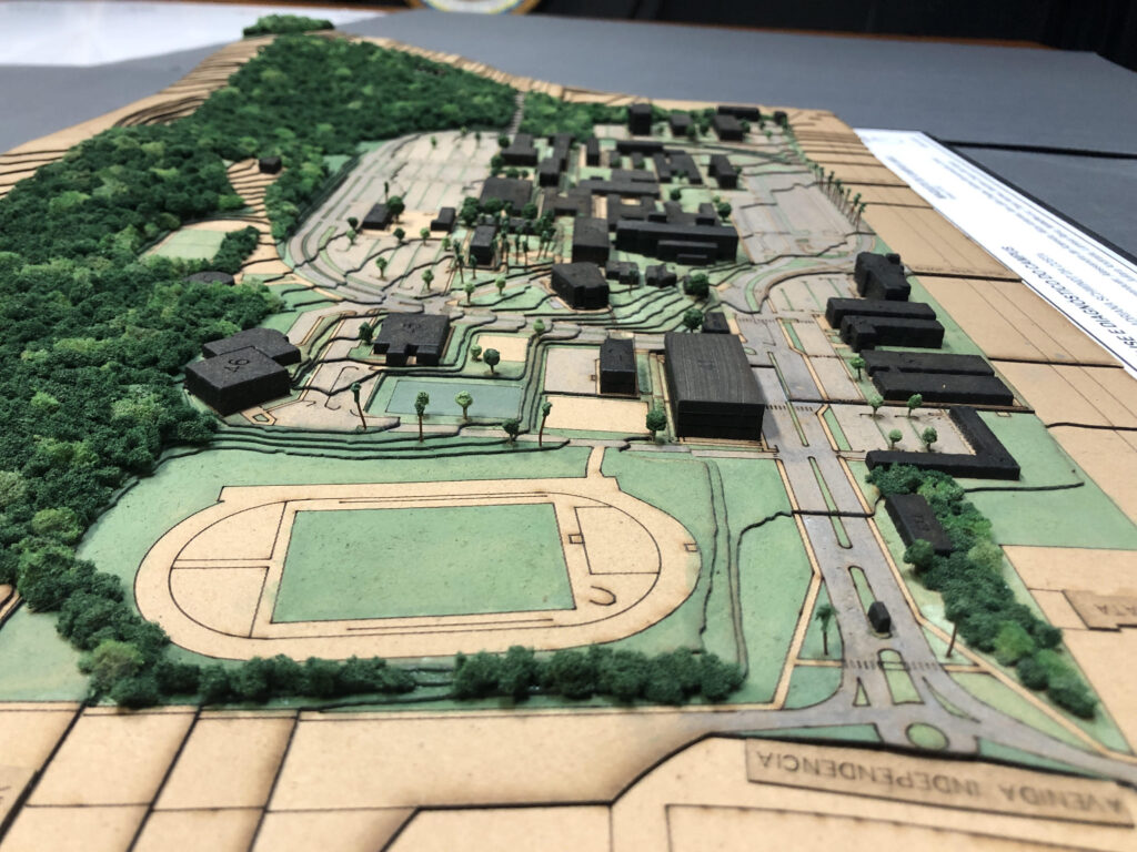 A maquete, que representa a primeira fase do projeto paisagístico, serve como uma ferramenta visual para o conceito do “Campus na Floresta”. A próxima etapa do projeto consistirá no desenvolvimento de propostas detalhadas para uma das áreas de lazer identificadas.