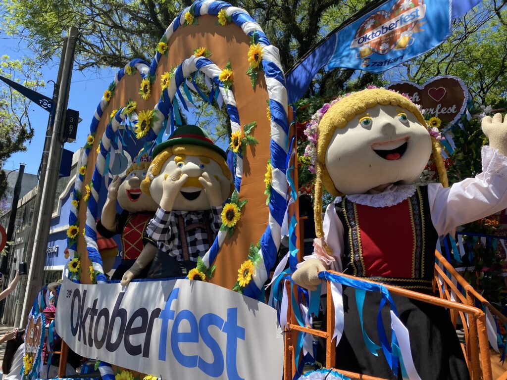 Entre as alegorias, o público verá representações do interior e da cidade, como casas germânicas, utensílios em escala, o trem, o rádio e o Pavilhão Central “visto pelo avesso”, em uma cenografia que valoriza o salão como o coração dançante da festa. O desfile se encerra com uma celebração de aniversário, em clima de brinde e aplausos aos 40 anos da Oktoberfest.